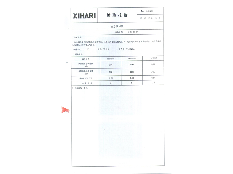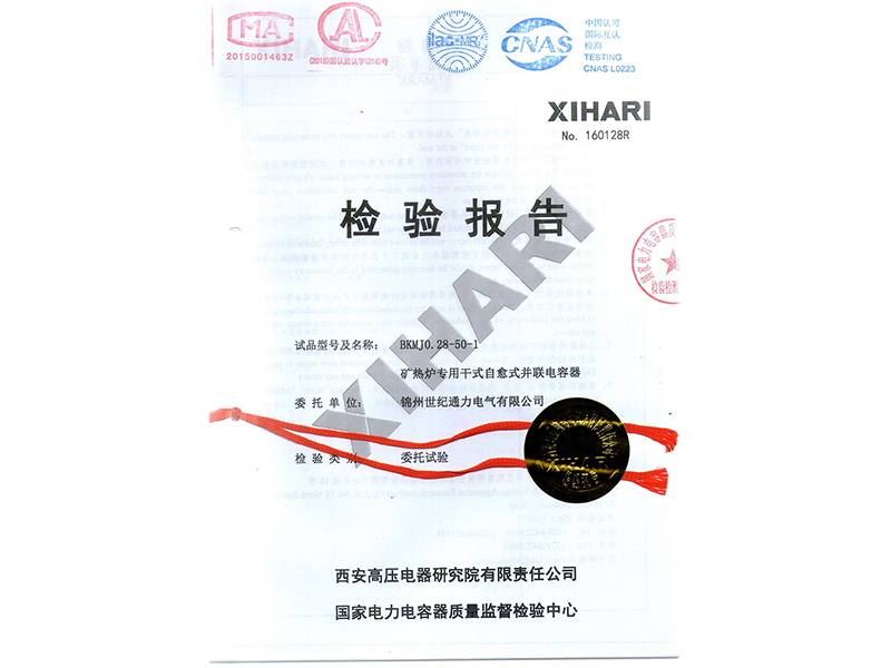 報告 礦熱爐專用干式自愈式電容器型式試驗報告